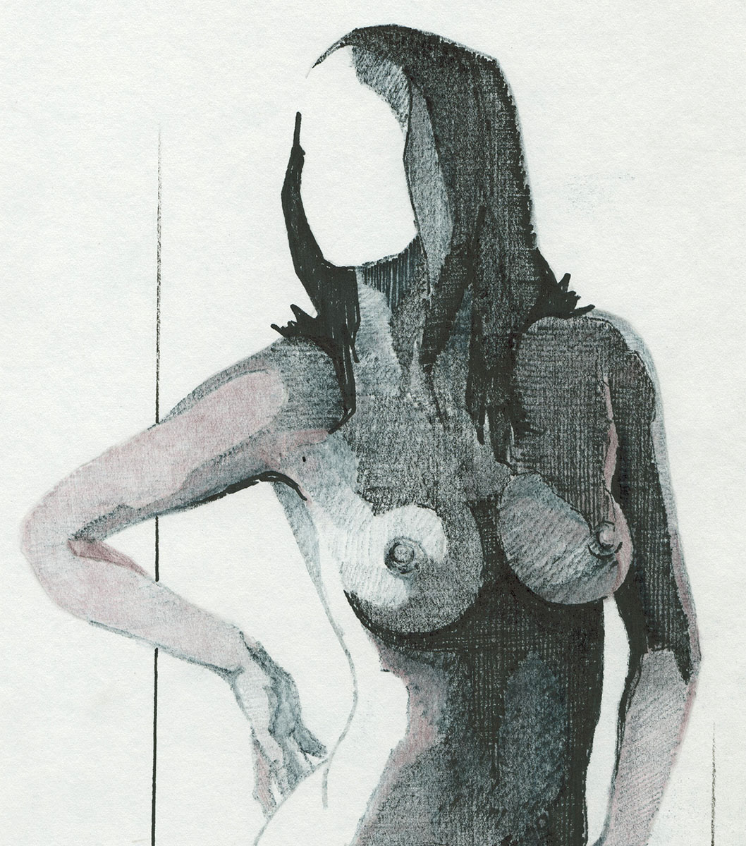 Schaduwtekening uitdagende naakte staande vrouw 060878