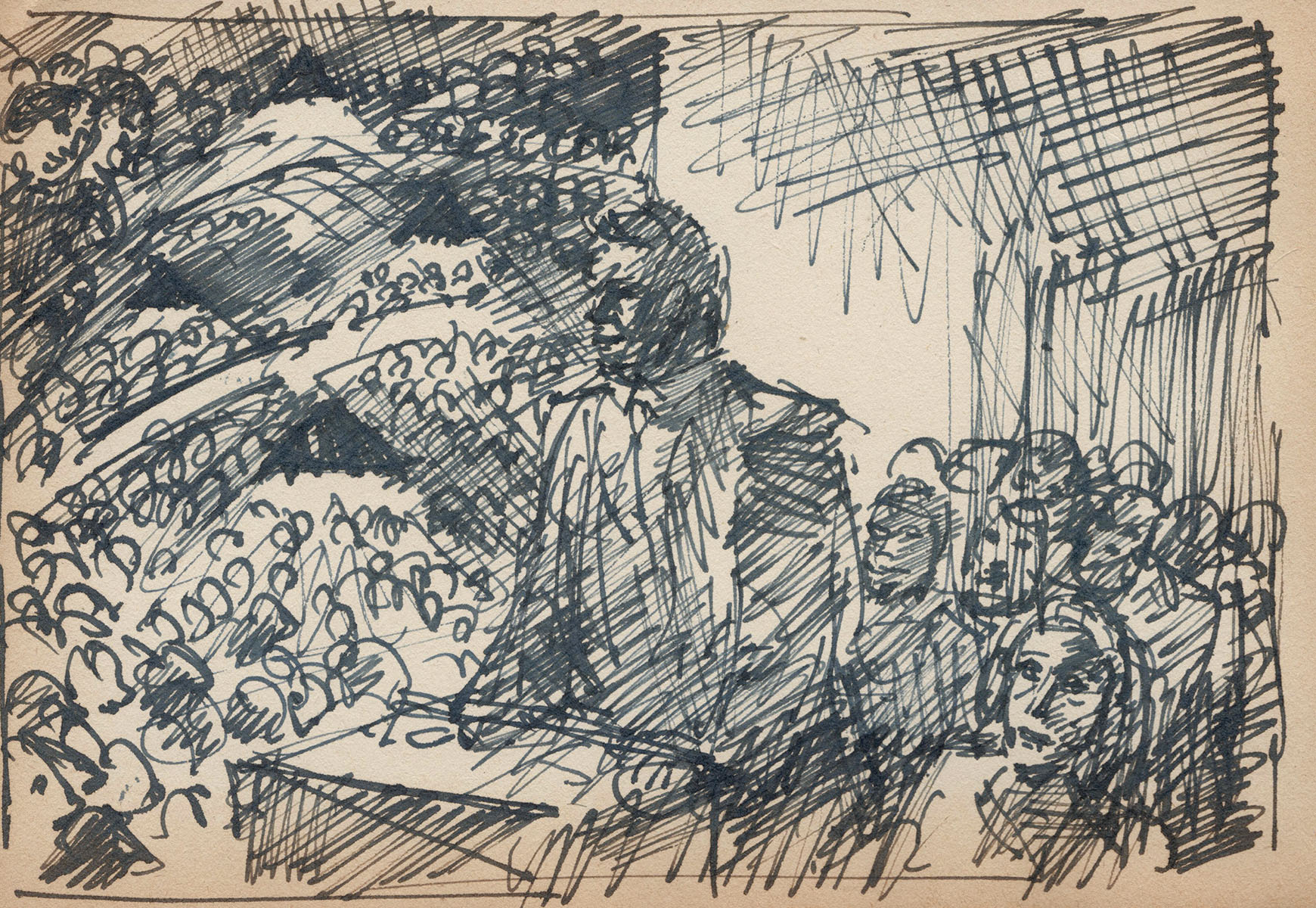 Remarks: This original drawing comes from Frans Masereel's sketchbook. The book is dated by the artist on the front: 1936-1937-1938-1939-1940. This is the 65th page of the book, out of a total of 105 pages of drawings and sketches. We provide a certificate of authenticity with this drawing referring to the details of the book. A video was made from this sketchbook before the drawings were offered individually. This video ensures that the authenticity of the drawings offered is assured. The video will be released when all the pages are scanned.