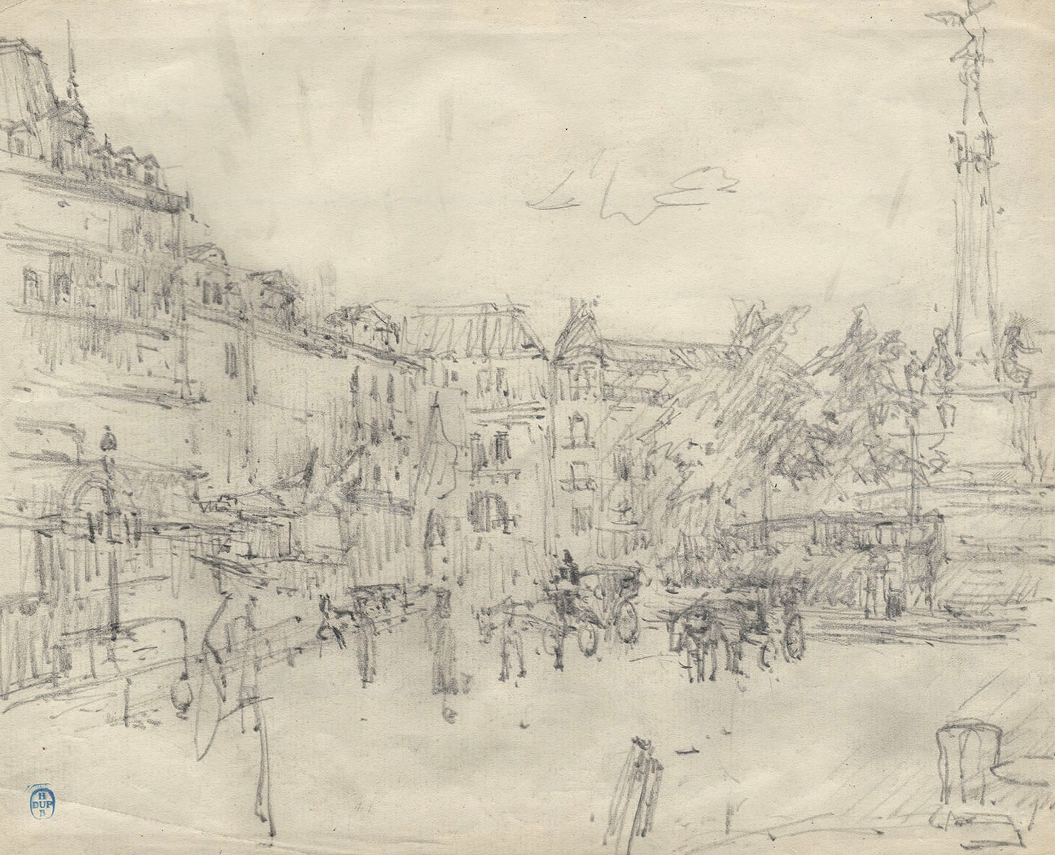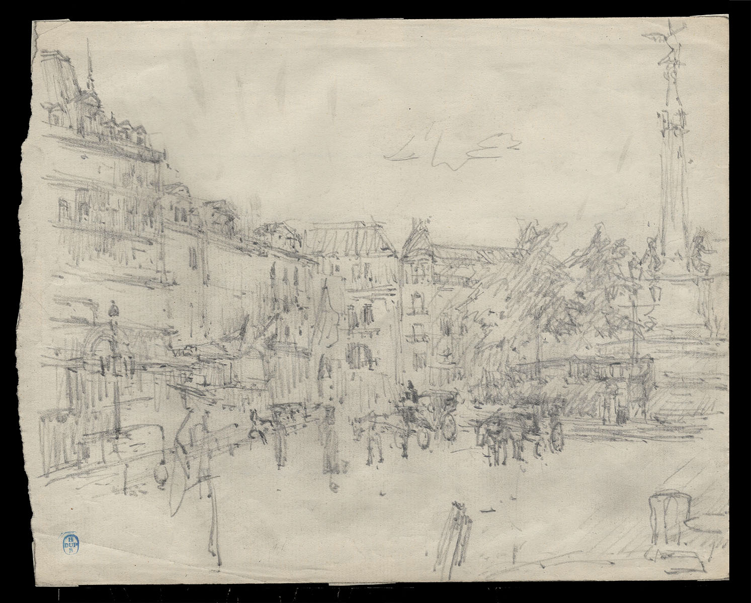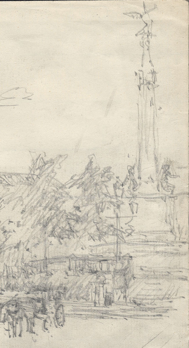 Schets, Brussels plein met Congreszuil (+/- 1895)