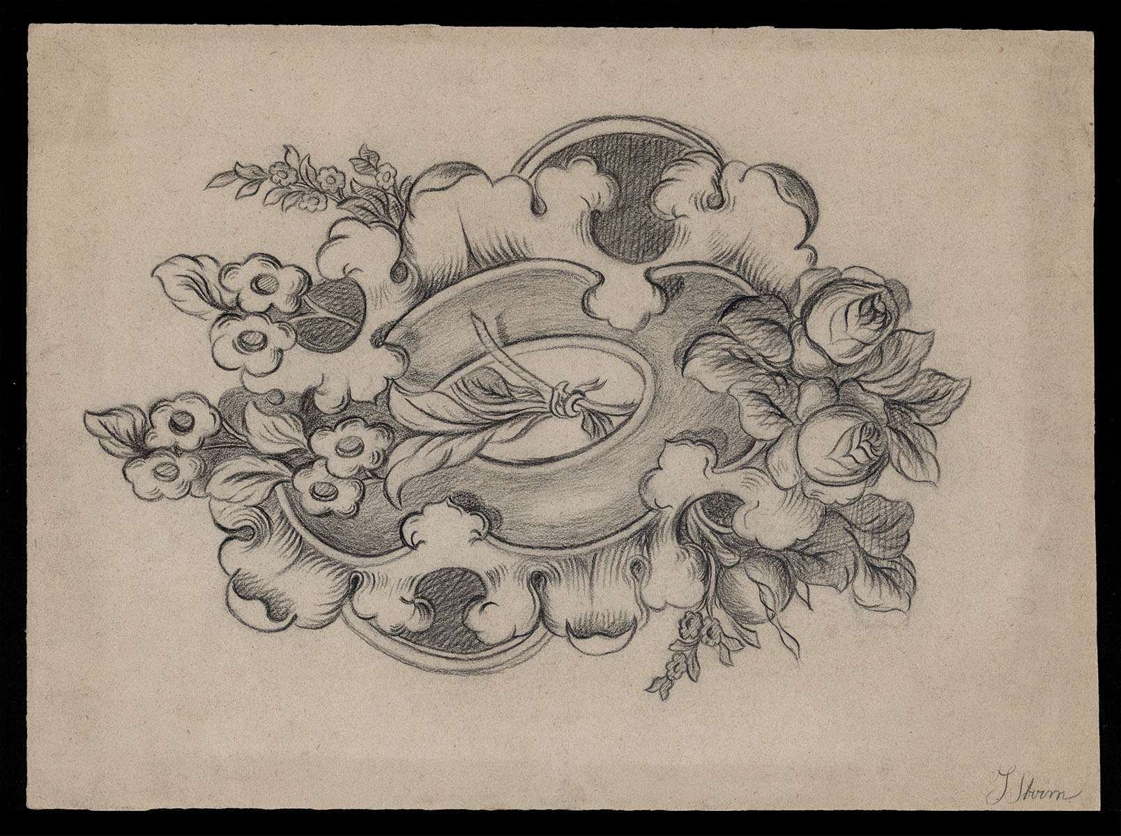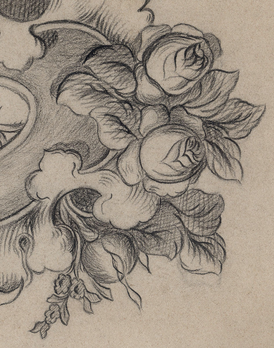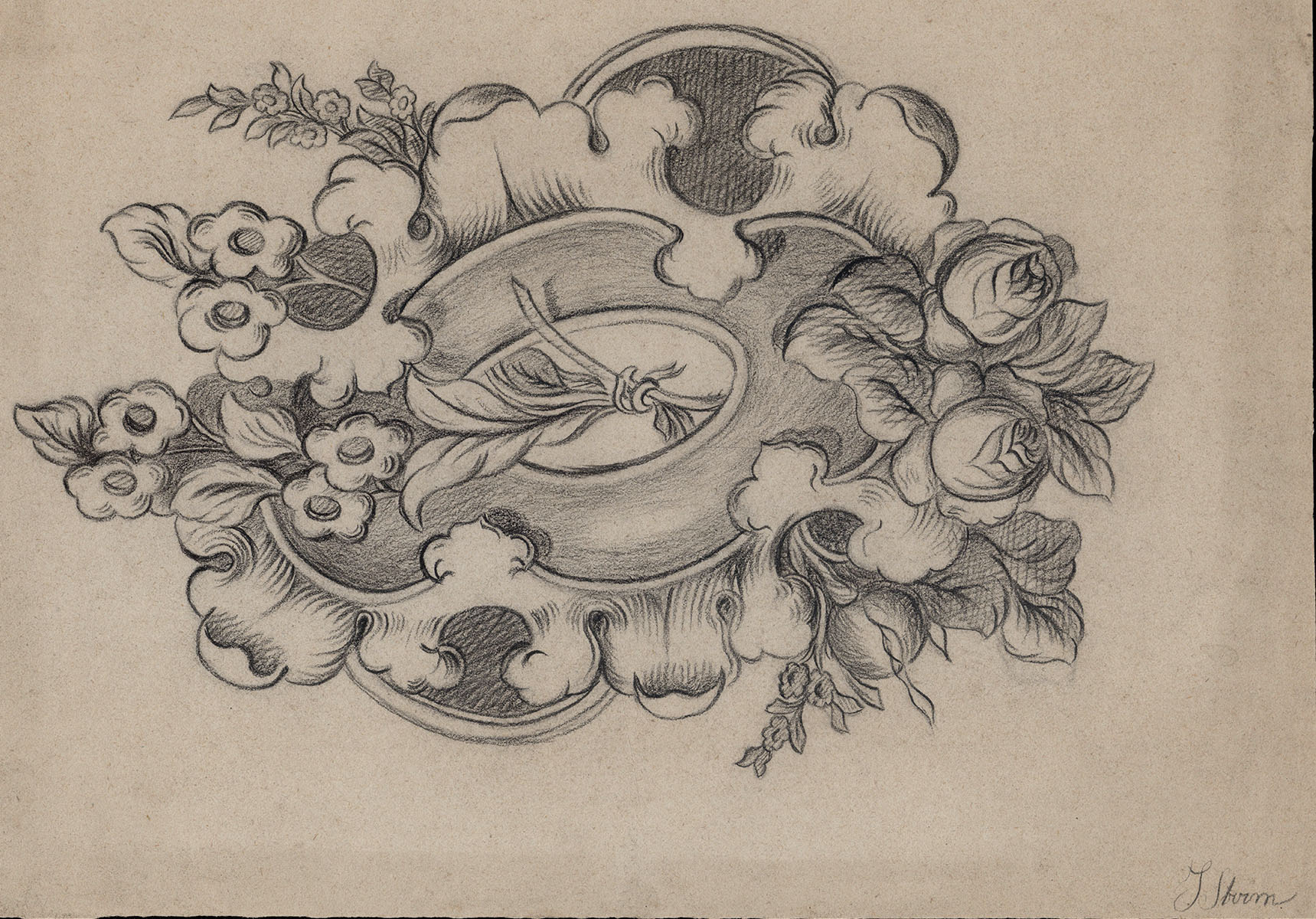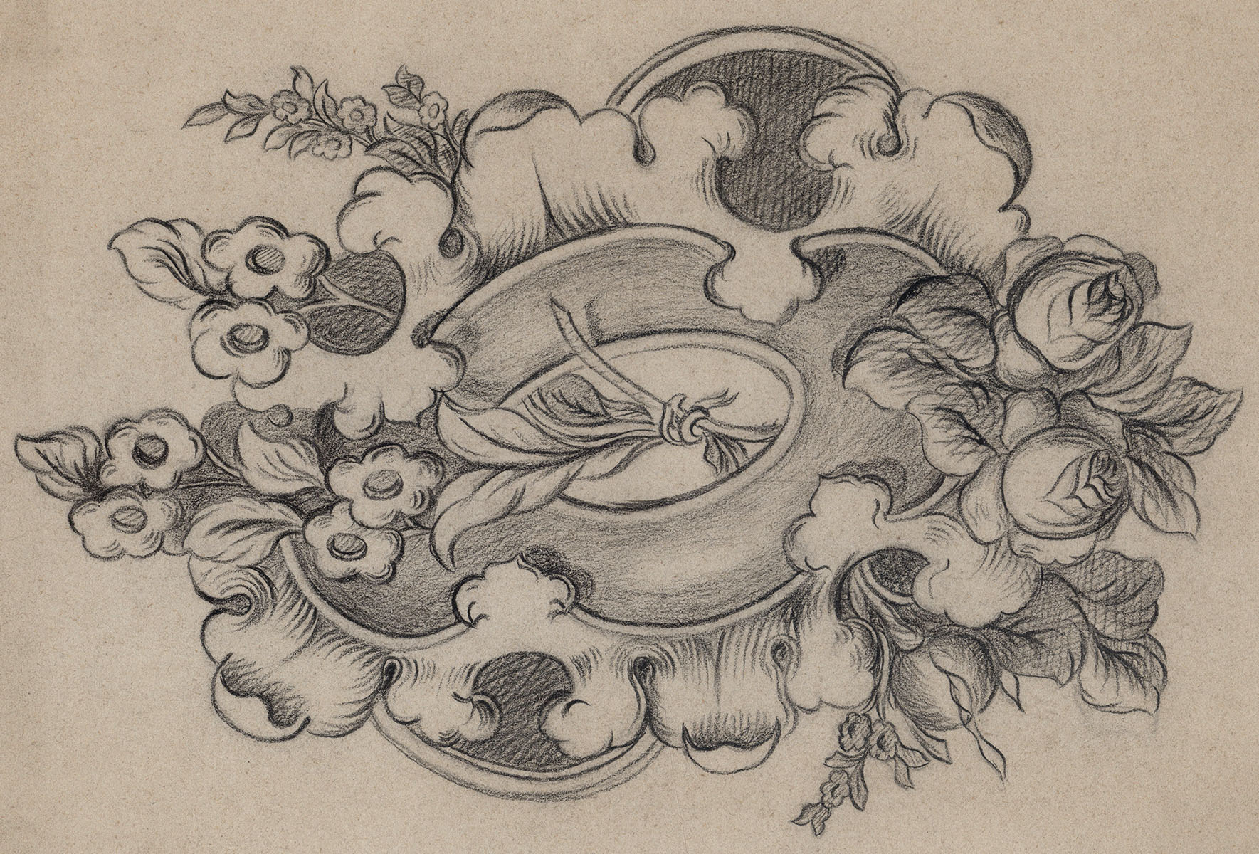 Asymmetrisch medaillon met bloemenmotief +/- 1900