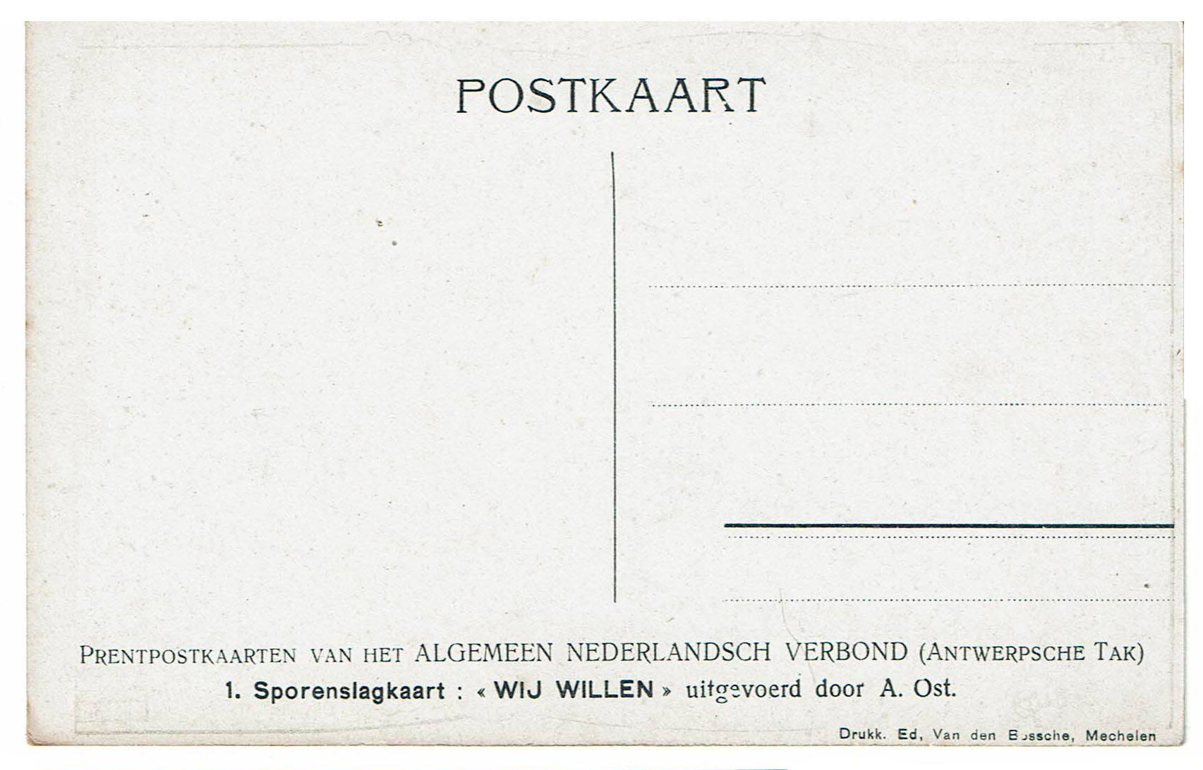 Postkaart Sporenslagkaart "Wij Willen"