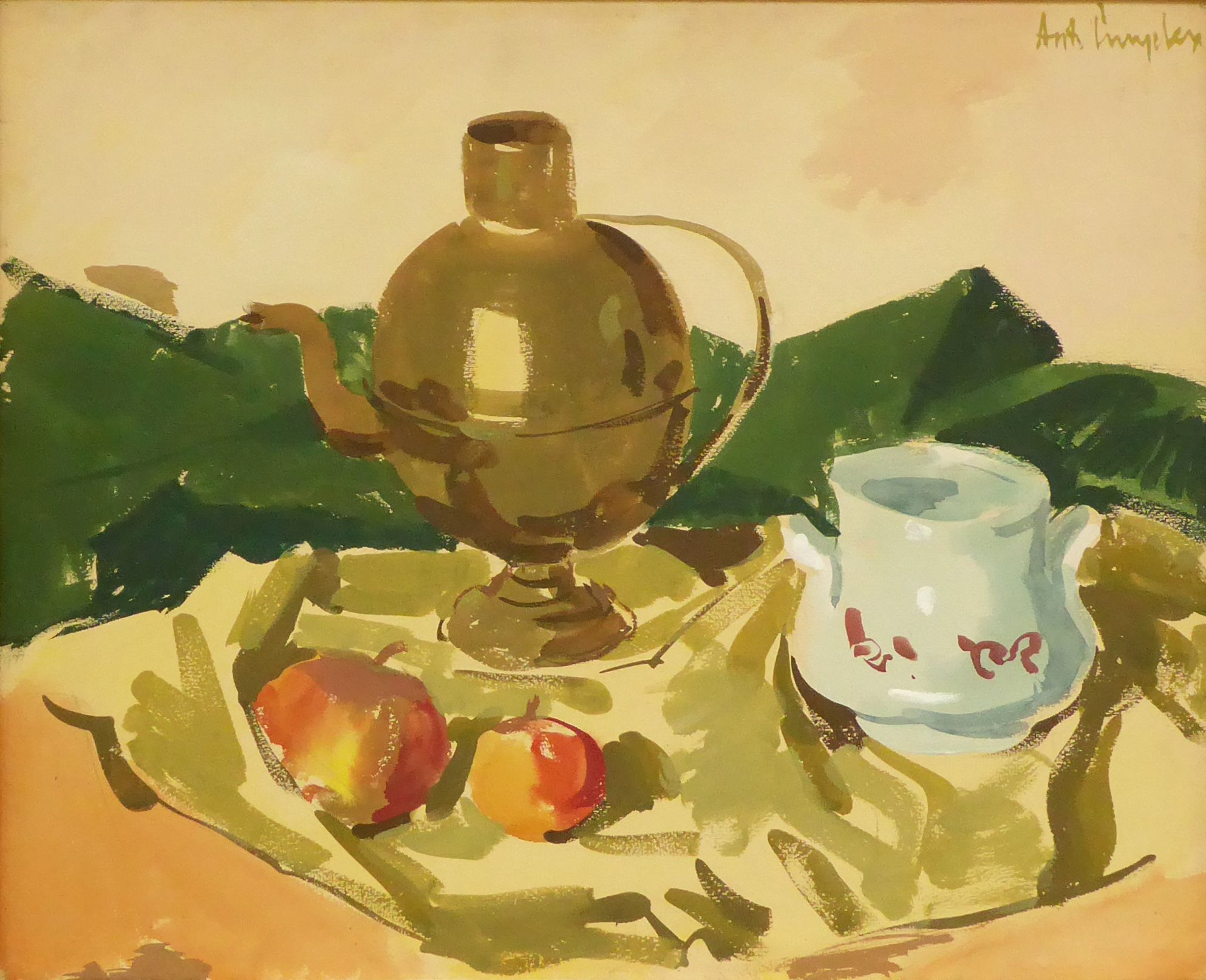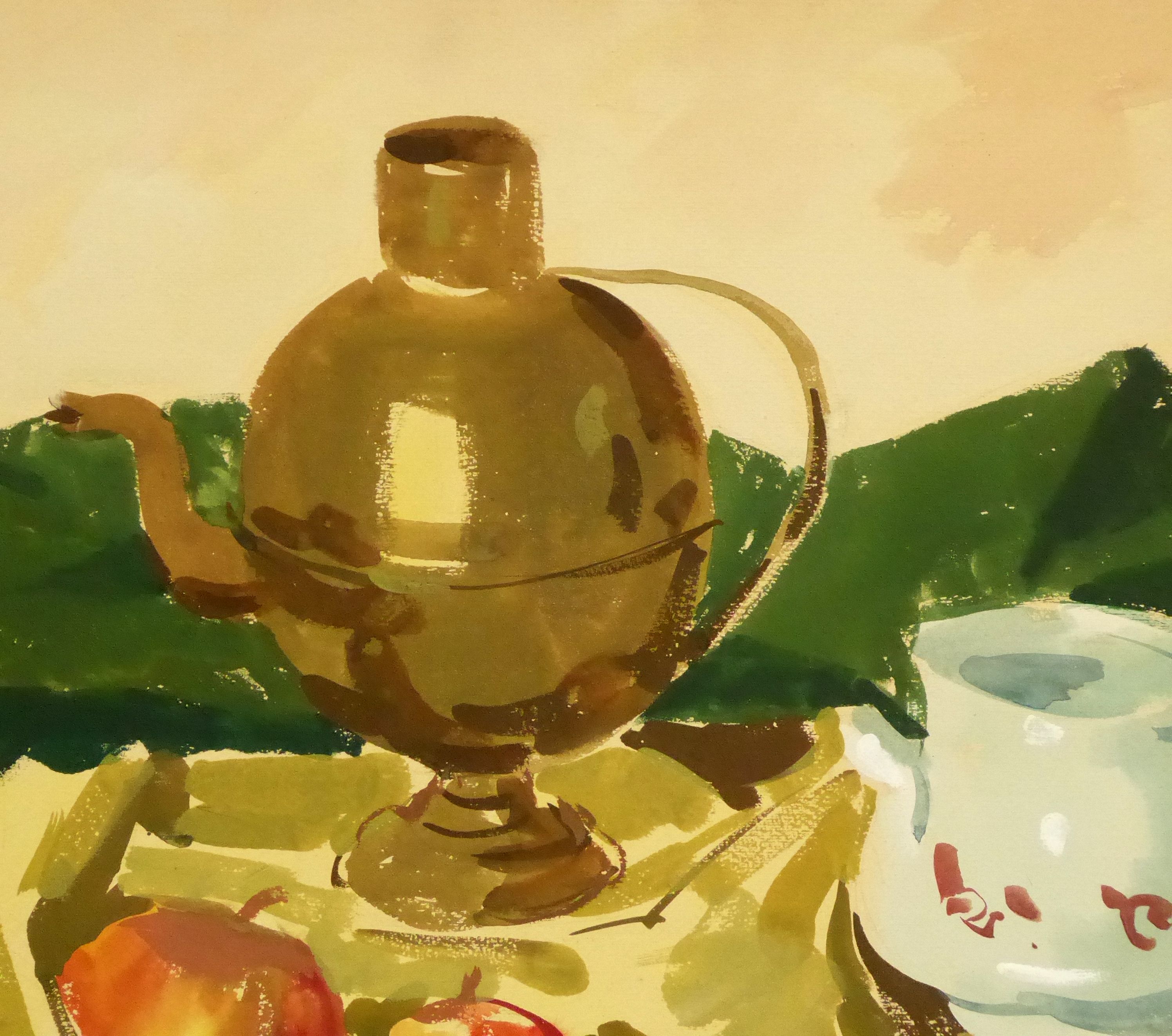 Gouache Stilleven met koperen pot 1958