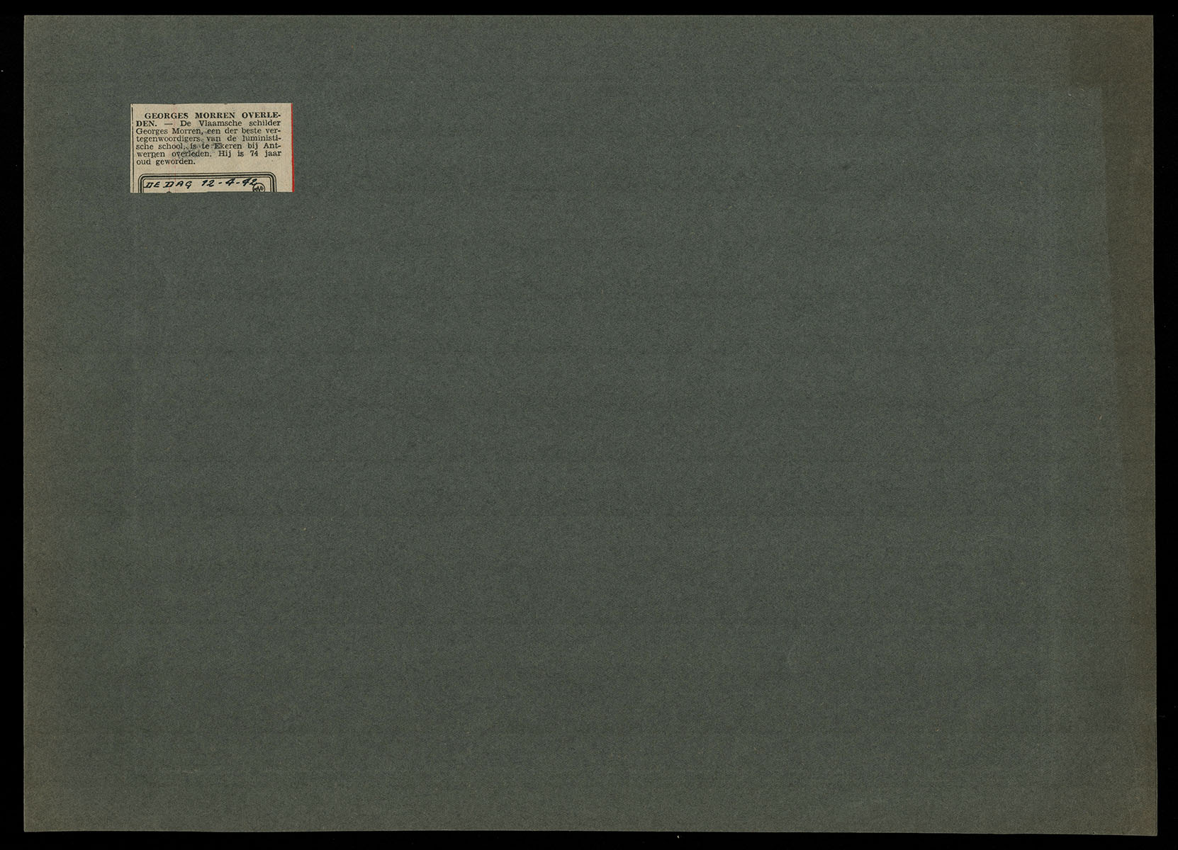 Remarks: Mounted on green sheet