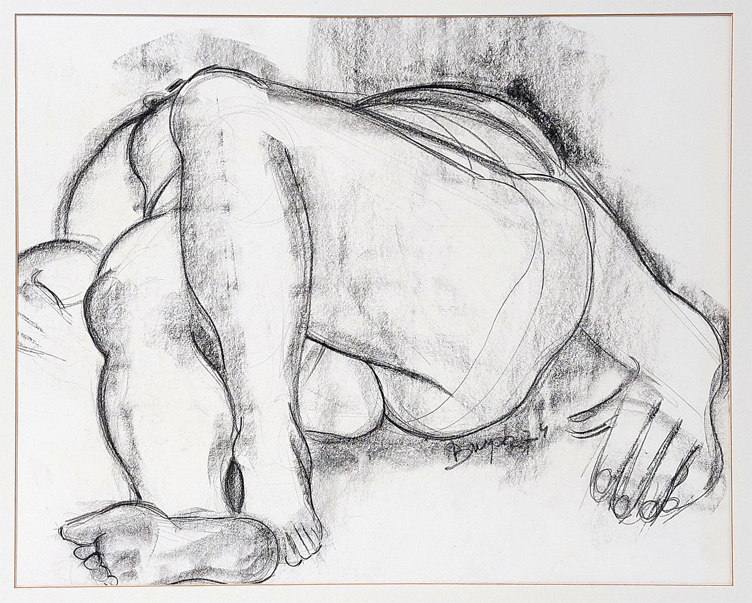 Houtskooltekening, liggend naakt 1974
