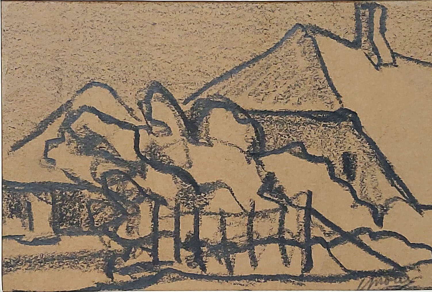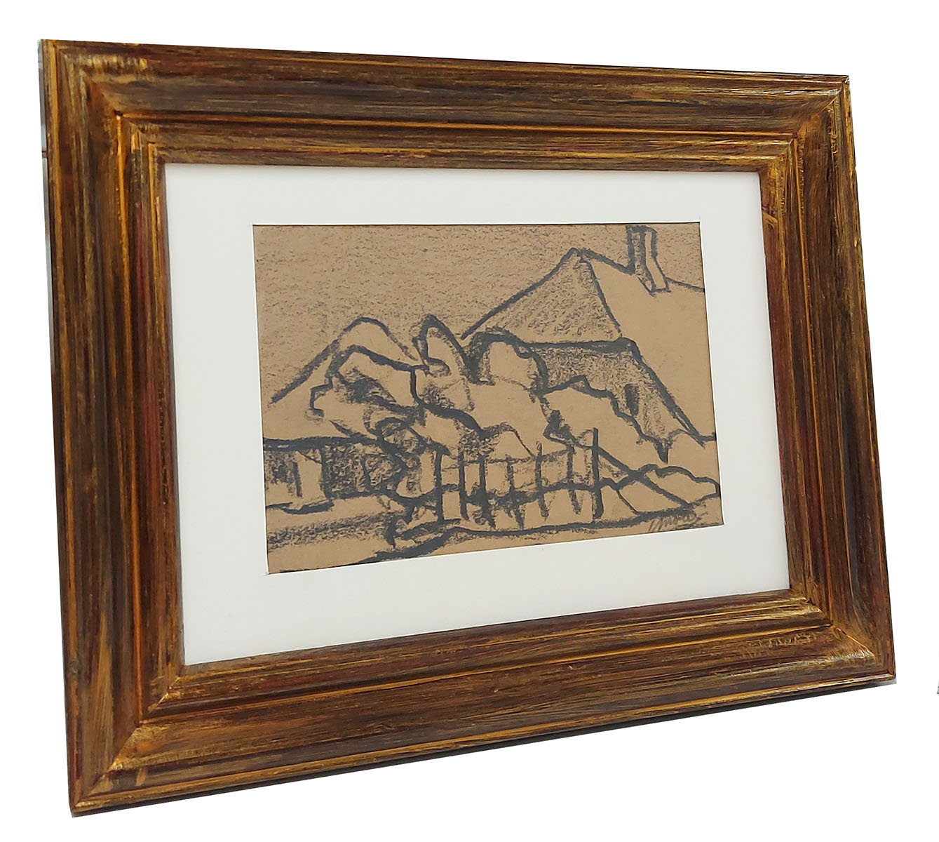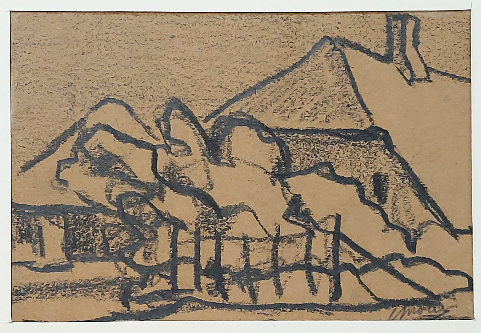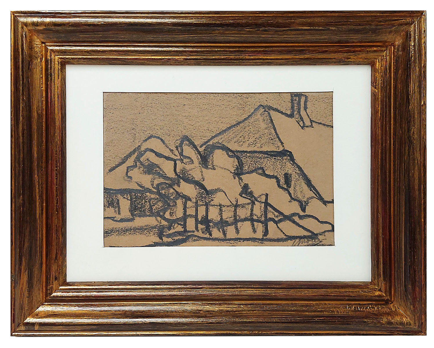 Houtskooltekening, het boerderijtje