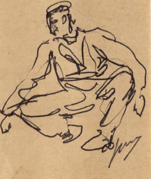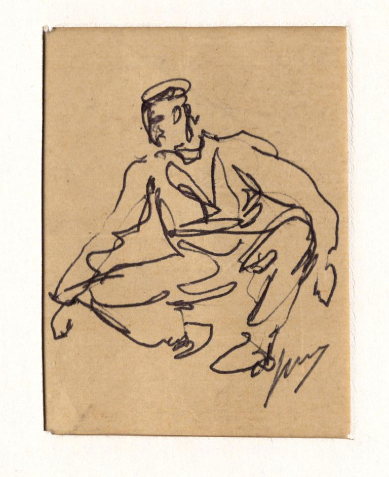 Kleine pentekening, gehurkte matroos