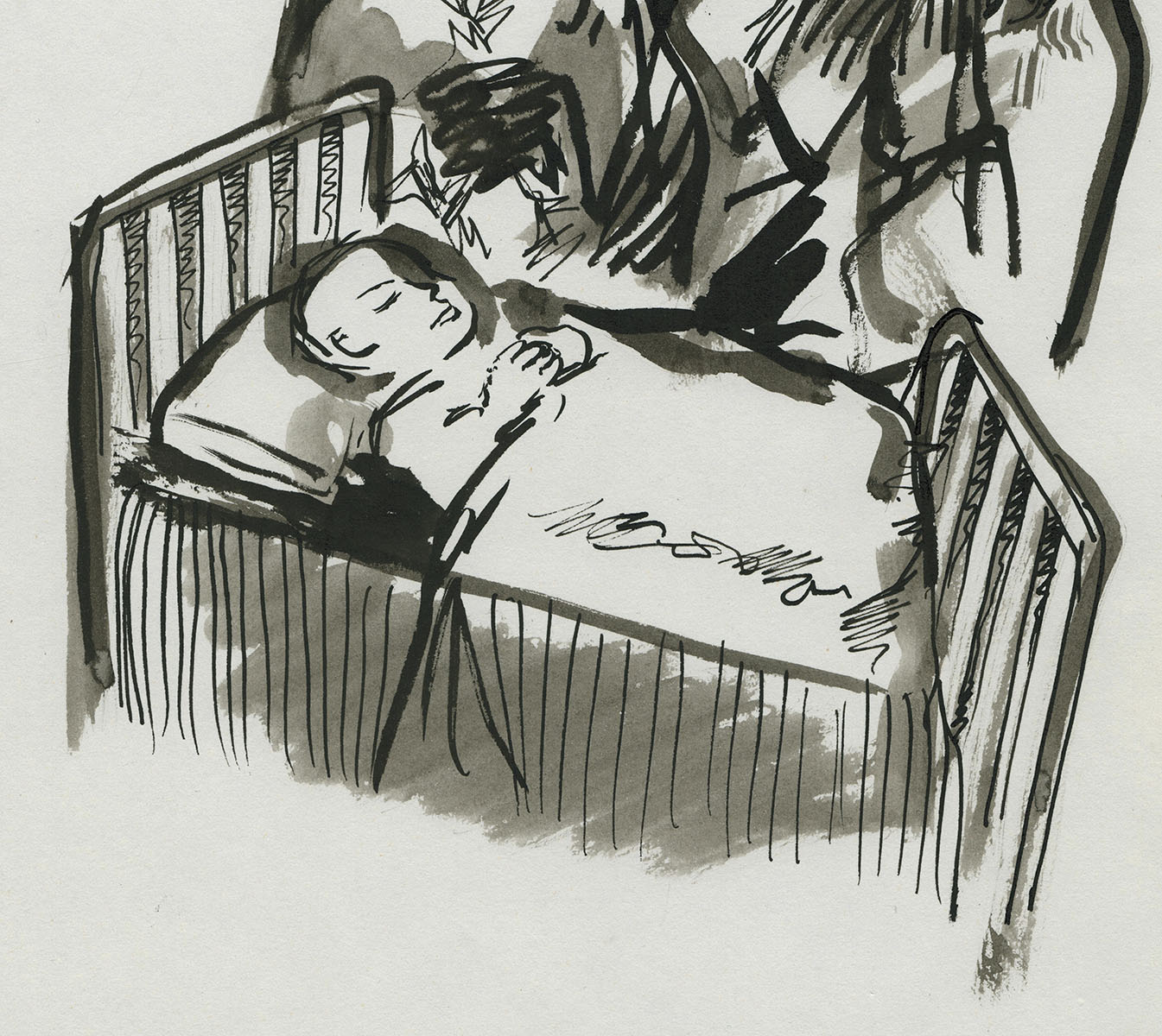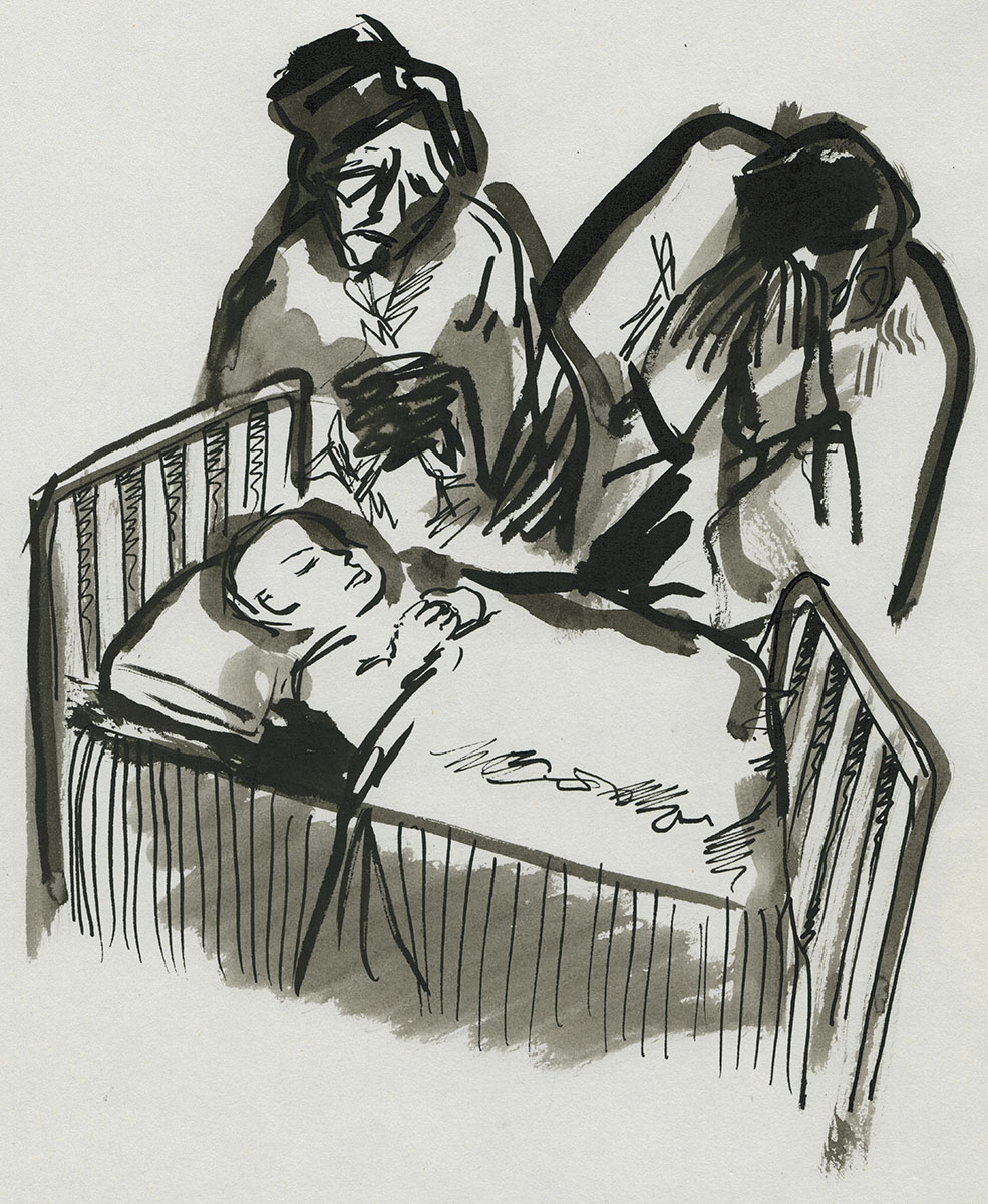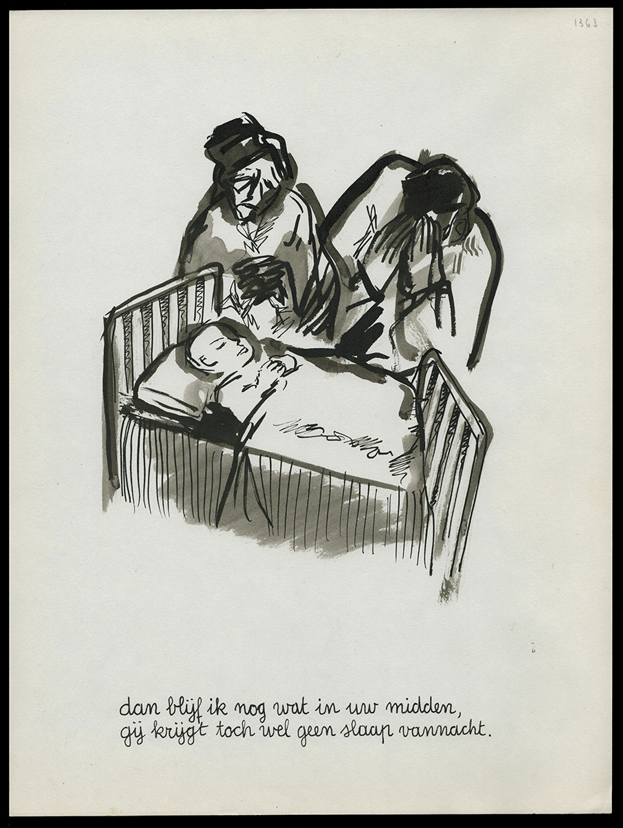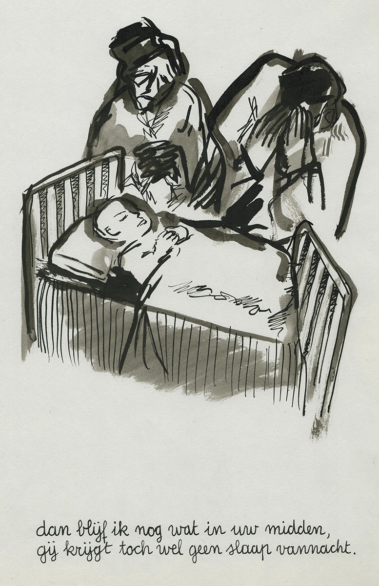 One of the 10 works of art that were drawn with the poem by Willem Elsschot "Bij het doodsbed van een kind".