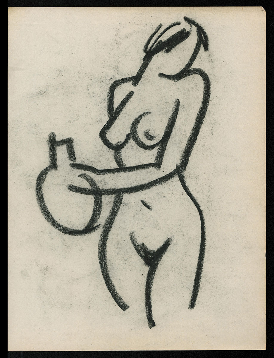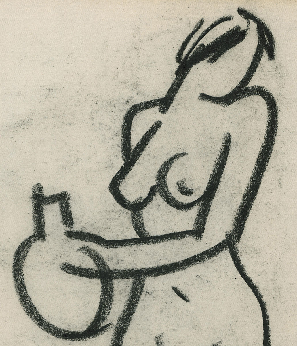 Schets naakt met vaas en stoer hoofd