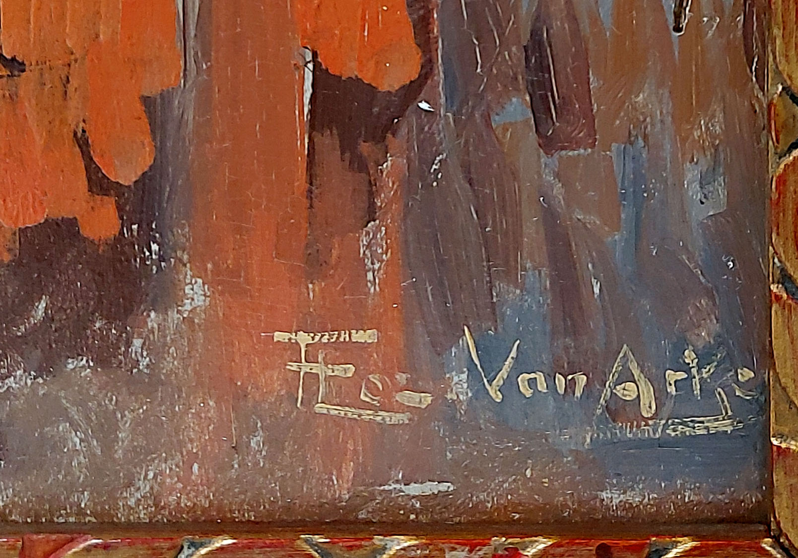 The painting has been professionally cleaned and the frame restored. Signed lower right, in good condition, and set in a distinctive carved frame. A vibrant tribute to the artist’s hometown.