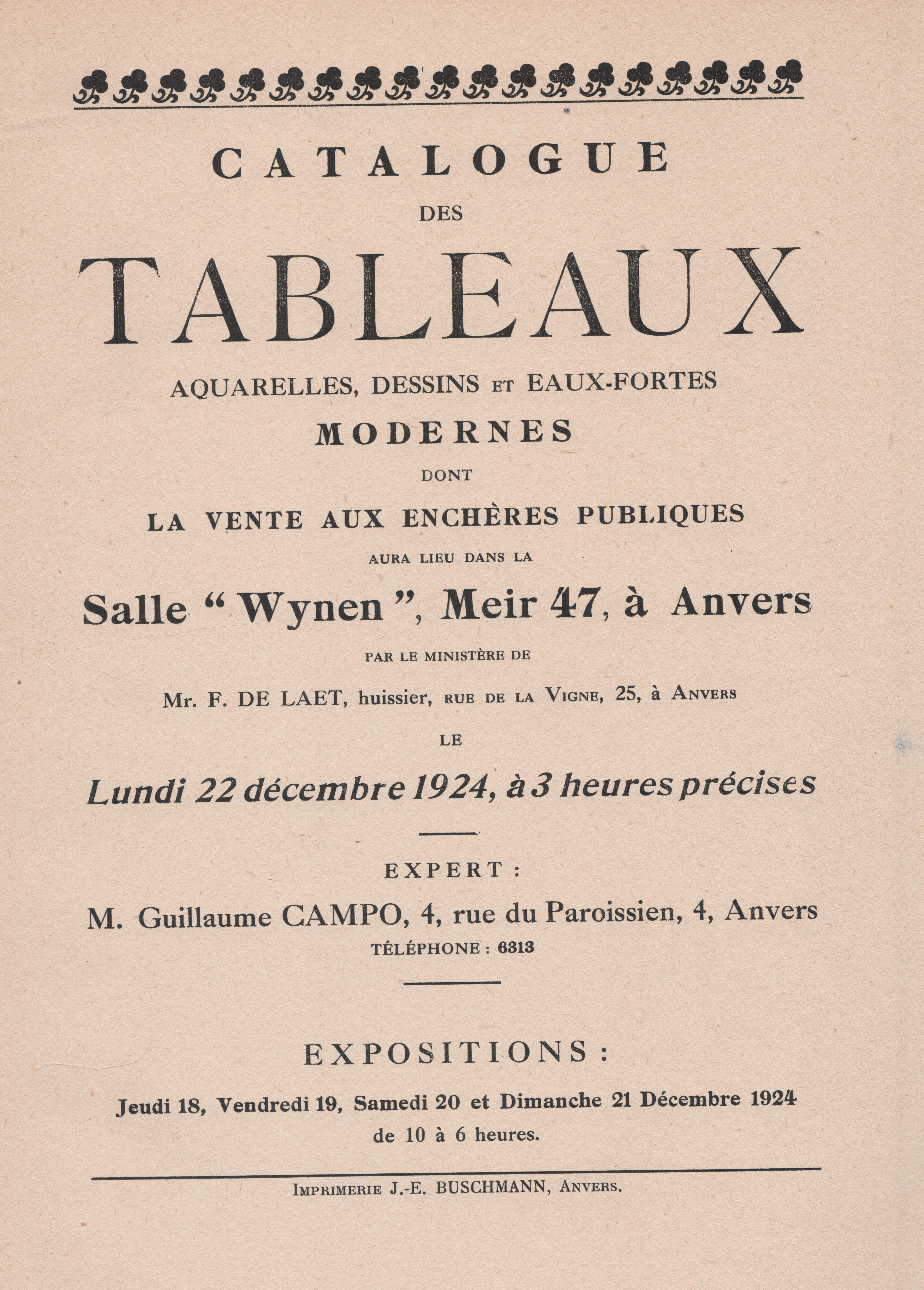 2516. Salle Wynen Tableaux de Maitres 22 dec 1924