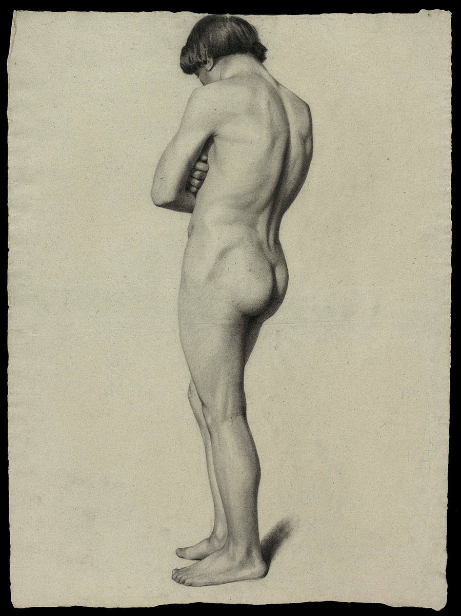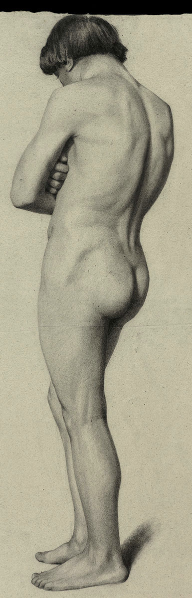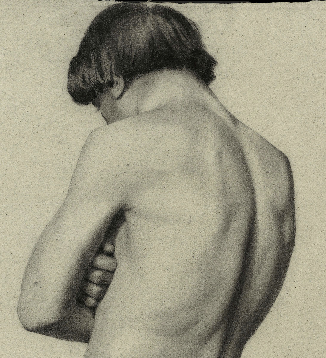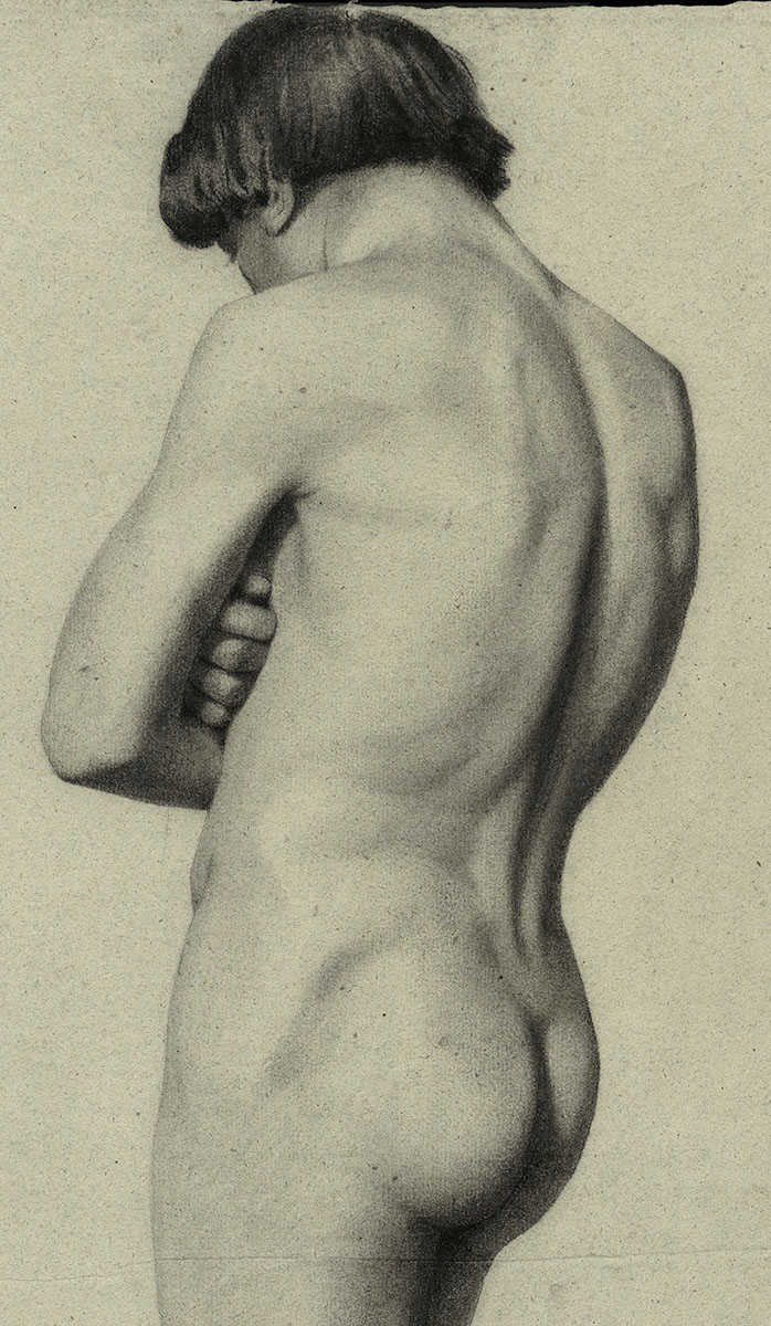 19 de eeuwse tekening, rug van een jongeling