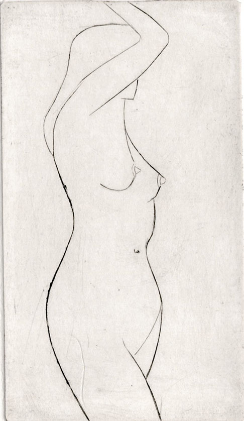 Kleine ets, staande naakte vrouw