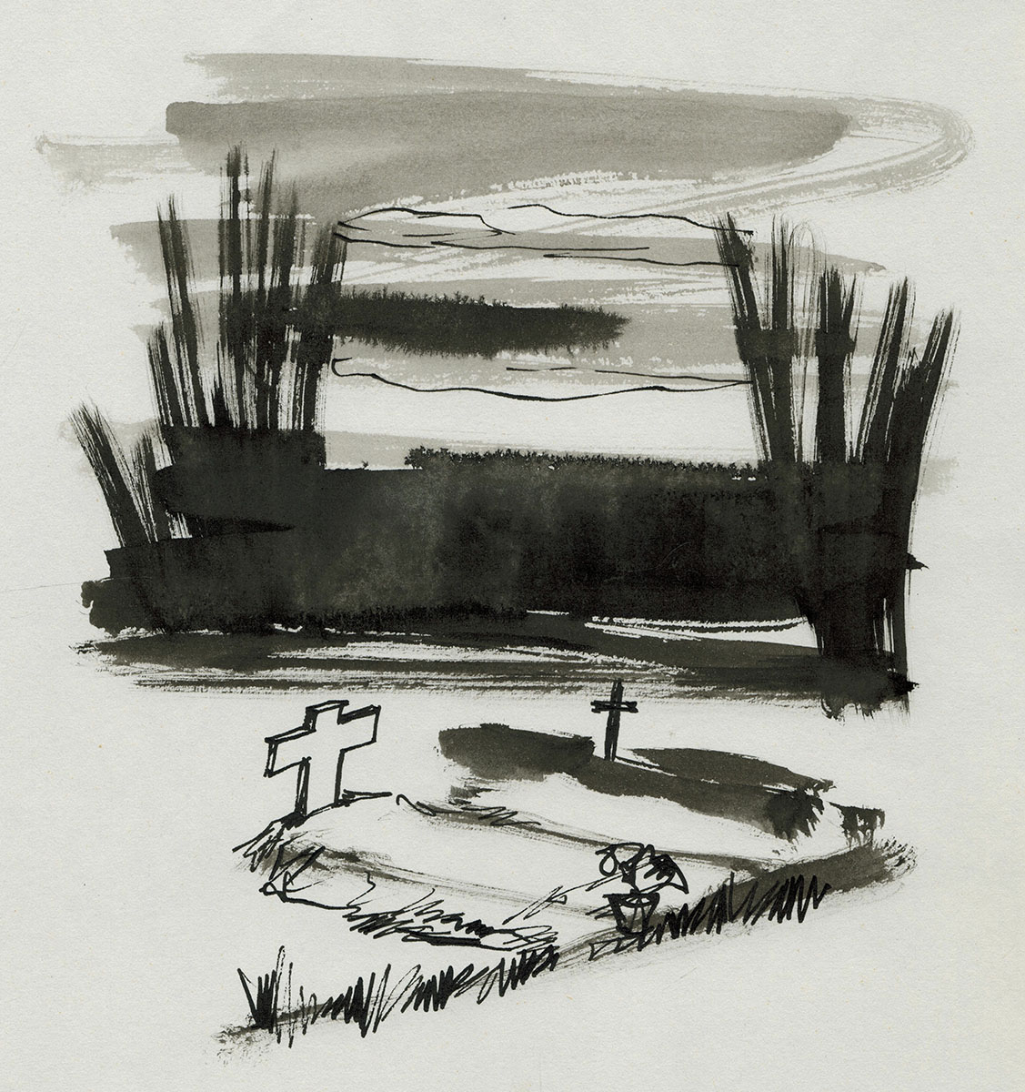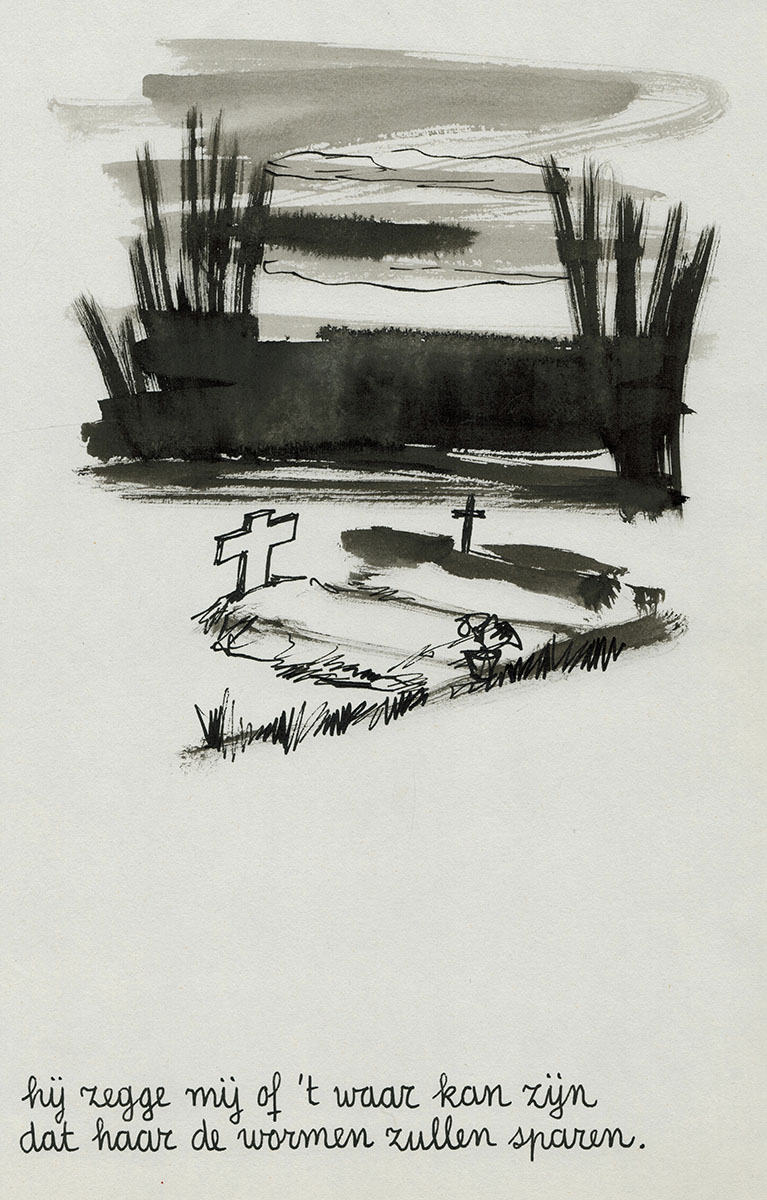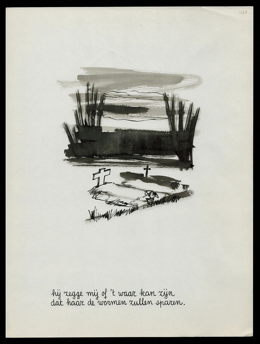 One of the 10 works of art that were drawn with the poem by Willem Elsschot "Bij het doodsbed van een kind".